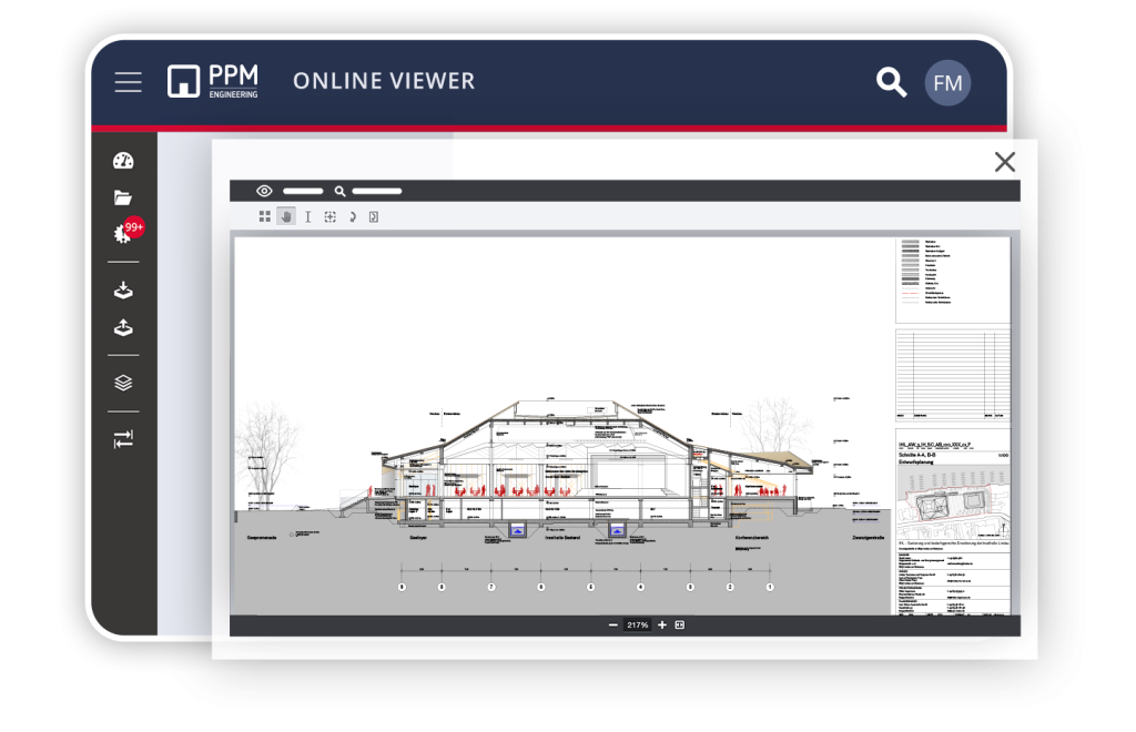 Met de PPM Raum kunnen momenteel meer dan 350 verschillende formaten online worden gelezen. Zonder downloads en installaties, geen dure licenties voor extra software. Ook DWG, DXF of IFC. Uiteraard ook op alle mobiele apparaten.