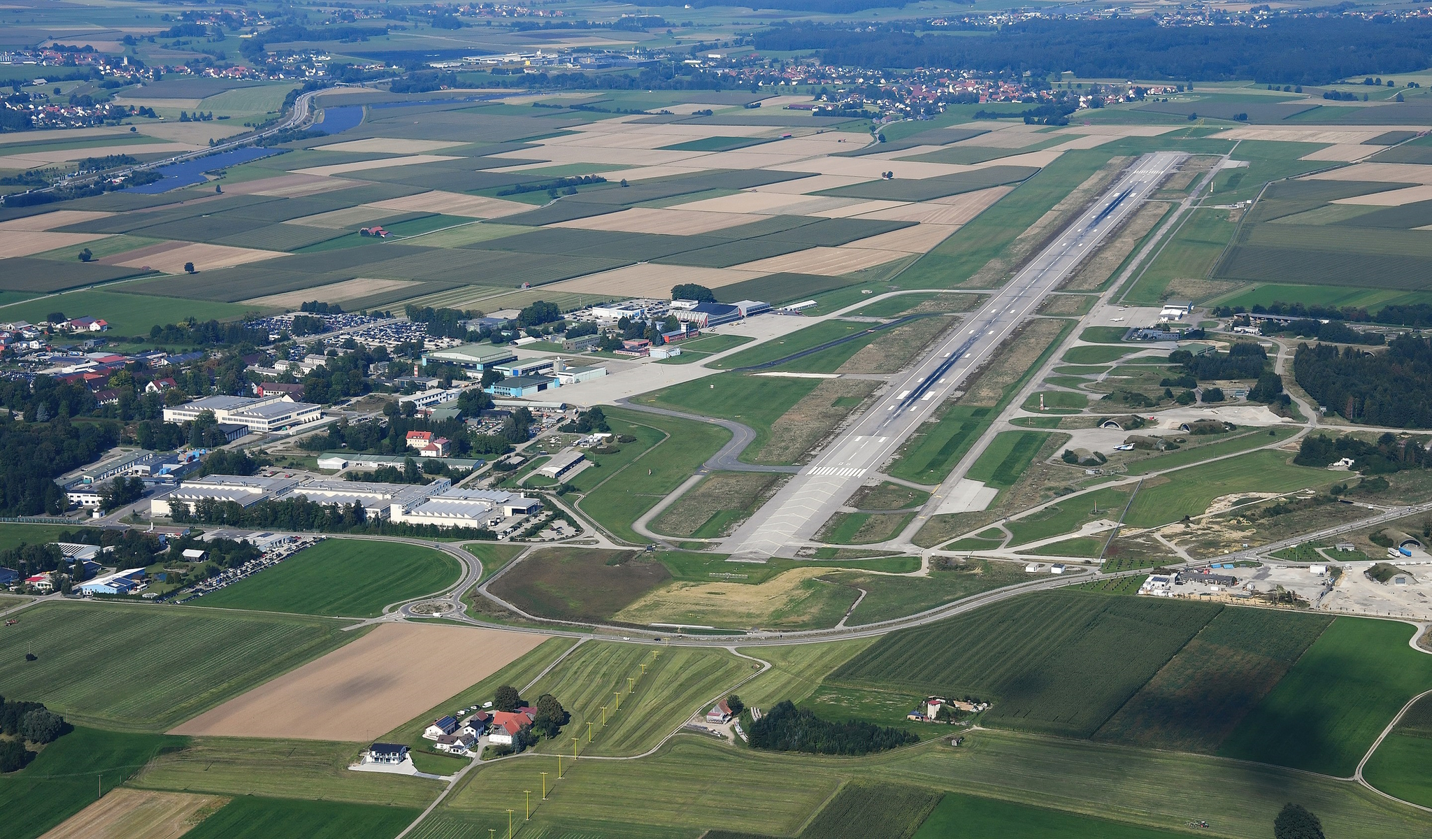 De luchthaven Memmingen beschikt over een 3.000 m lange en 30 m brede start- en landingsbaan (SLB) en een systeem van taxibanen. Ten noorden van de SLB en het taxibaansysteem bevinden zich het passagiersplatform en andere platforms die door de vliegoperaties worden gebruikt. Ten zuiden van de SLB staan vliegtuighangars en shelters, verder is er luchtvaartgerelateerde industrie en algemene luchtvaart gevestigd. Als onderdeel van de bouwwerkzaamheden werd de ongeveer drie kilometer lange start- en landingsbaan verbreed van 30 naar 45 meter.