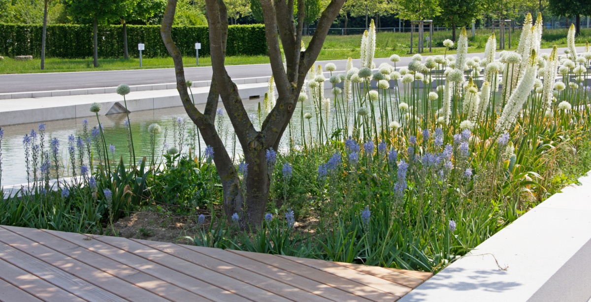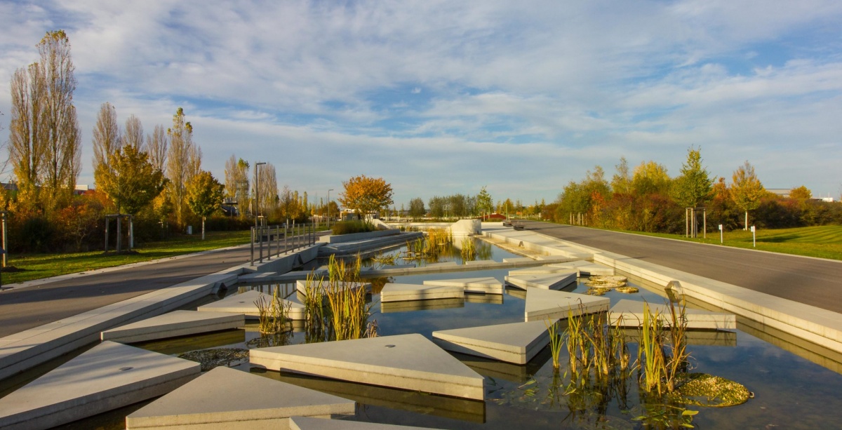 Sinds juli 2017 wordt in het dichtbevolkte noordwesten van Ingolstadt een gezinsvriendelijke recreatieruimte ontwikkeld voor de mensen in de regio. In 2020 biedt de Landesgartenschau onder het motto “Inspiratie Natuur” gedurende 164 dagen een spannend tentoonstellings- en evenementenprogramma met diverse verwijzingen naar het thema duurzaamheid. Het nieuwe landschapspark wordt in het westen geflankeerd door het winkelcentrum Westpark en in het oosten door het goederenverkeerscentrum. In het noorden grenst het aan de Hochkreisel, in het zuiden aan de drukke Richard-Wagner-Strasse. Net als Ingolstadt zelf staat het nieuwe tuinshowterrein in een spanningsveld tussen traditie en vooruitgang. Handel, industrie, verkeer en economische landbouw oefenen van alle kanten druk uit op het terrein. De landschapsarchitectuur speelt in op deze spanning.