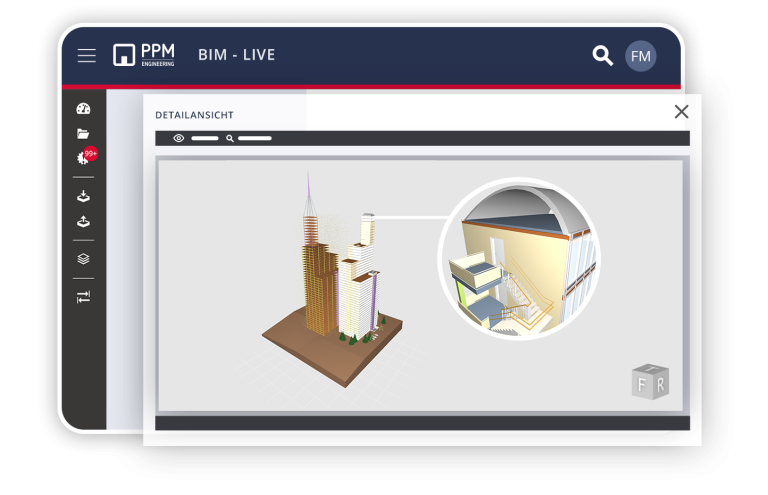 De PPM Raum is een BIM-conforme gemeenschappelijke data-omgeving (CDE – Common Data Environment) volgens DIN EN ISO 19650 en DIN SPEC 91391 en biedt deelnemers interactieve, comfortabele toegang tot de modelgegevens direct in de browser.