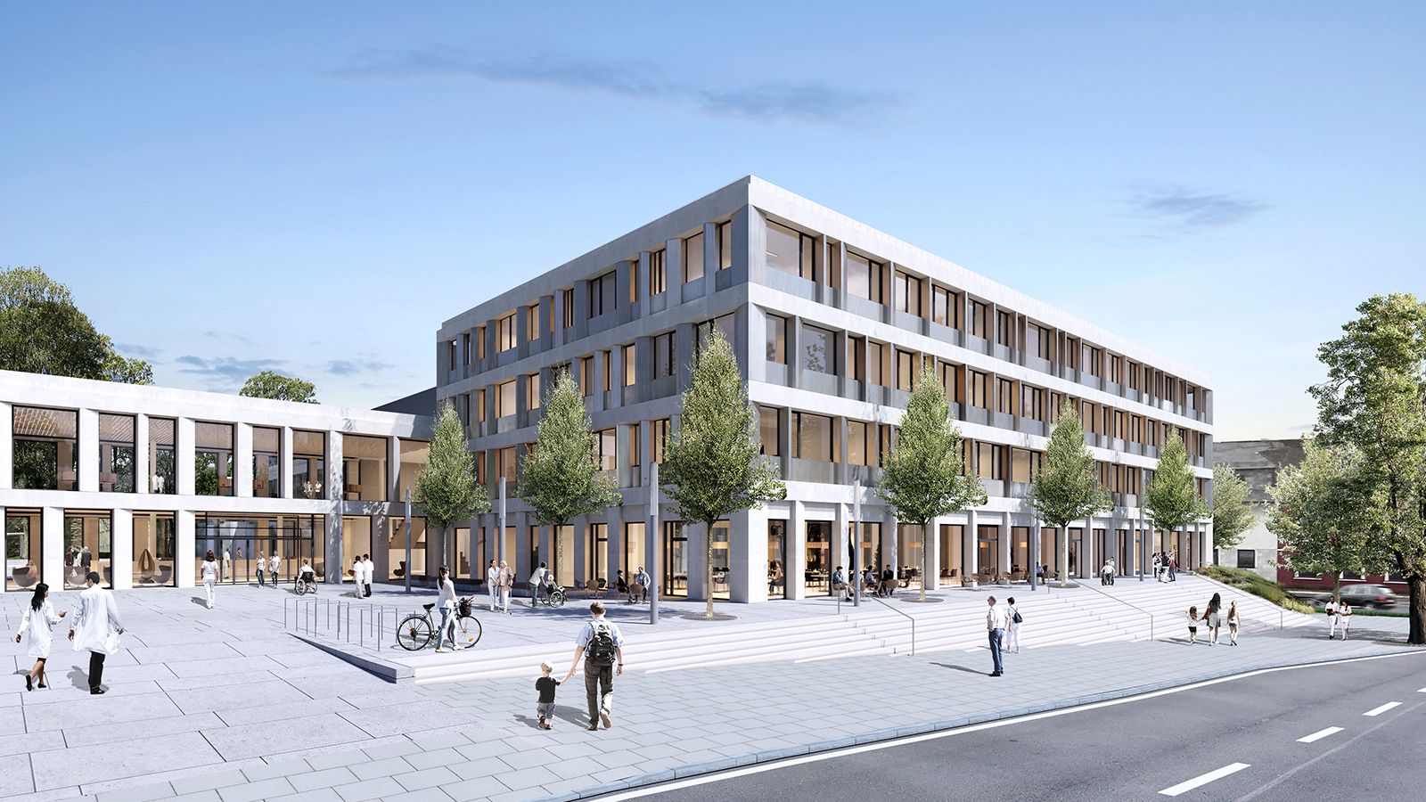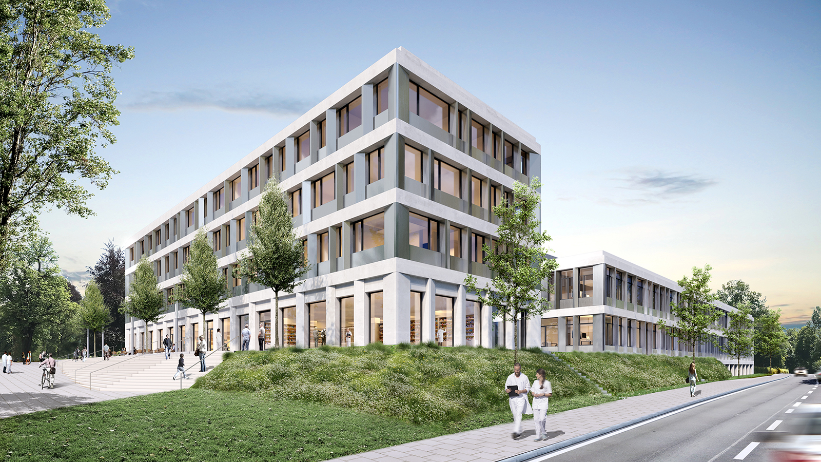 De kliniek Münchberg krijgt in twee bouwfasen een toekomstbestendige en architectonisch hoogwaardige nieuwbouw die voldoet aan alle eisen van een patiëntvriendelijk, economisch, flexibel en modern ziekenhuisgebouw.