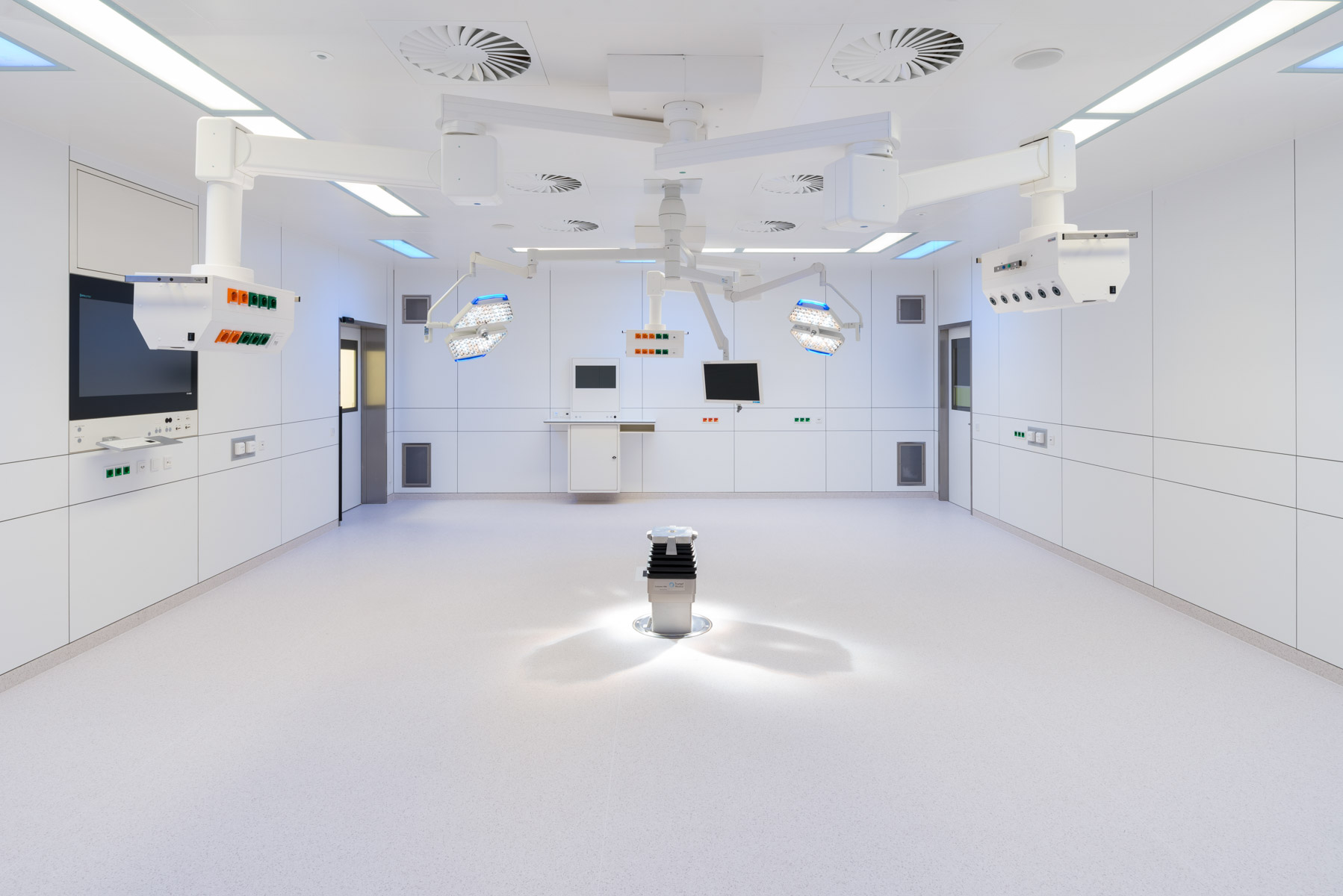 Om de medische zorg op E06 te waarborgen, wordt aan de noordzijde een externe lift voor steriele goederen gebouwd, die de centrale sterilisatie op niveau 01 verbindt met het nieuwe operatieniveau. Alle verbouwingswerkzaamheden worden uitgevoerd terwijl het ziekenhuis in bedrijf blijft, onder krappe ruimtelijke omstandigheden, en stellen hoge eisen aan de vooruitziende planning, coördinatie en organisatie van patiënten en medewerkers.